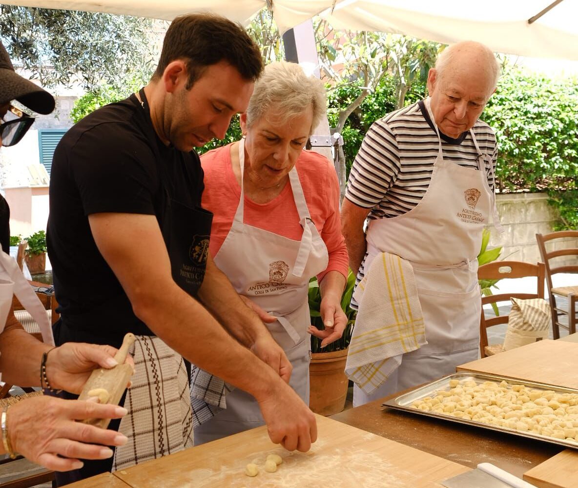 We sit together at the big family table. We’ll enjoy the dishes you prepared, accompanied by plenty of local wine and laughter. The experience ends with a homemade “Tiramusù” and a chilled Limoncello.